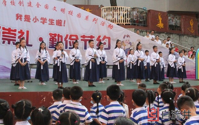 为传承勤俭节约的中华民族传统美德,入学仪式上,高年级学生还通过演唱《勤俭节约歌》和发出节约粮食倡议书,带领学弟学妹们从“光盘行动”做起,争当勤俭节约践行者,共建节约型和谐校园。