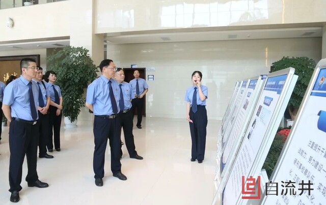 与会人员参观了自流井区院做优刑事检察和开展认罪认罚工作成果展板,观看了自流井区院利用远程开庭系统出庭支持公诉的速裁程序庭审和精准量刑过程的演示视频。