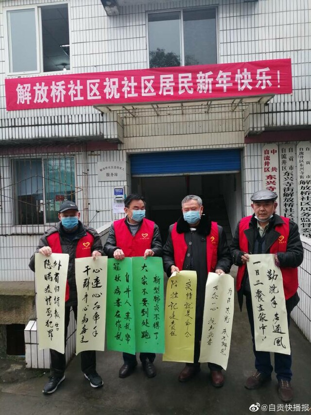 勤洗手多通风,一日三餐在家中”“新型肺炎不得了,大家不要到处跑”“自井人,莫乱窜,冠状病毒在作乱”“心连心手牵手,干群齐心病毒走”……近日,解放桥社区组织4名党员、居民志愿者,在社区书写了近200份宣传海报,鼓舞居民的人心。据了解,这些暖心鼓劲的标语,将被张贴在自流井区的大街小巷,广而告之。