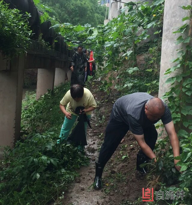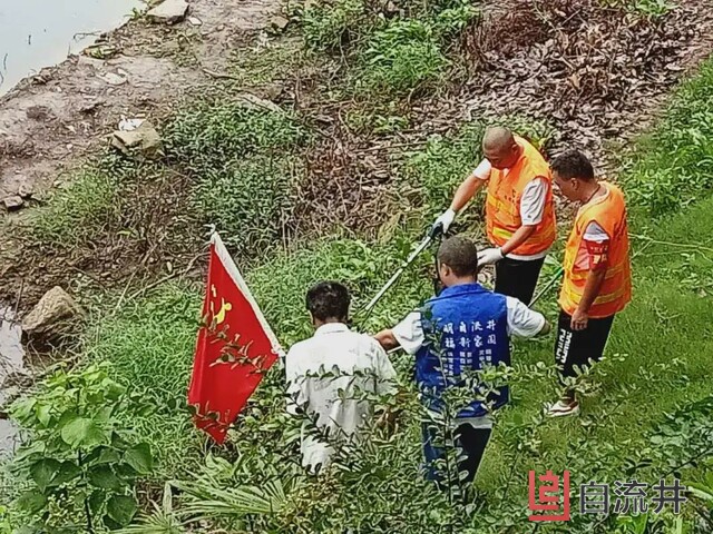 6月30日下午,盐都暴雨如注。自流井区郭街盐都山水社区原同济医院综合楼后的金鱼河河岸边,却党旗闪亮,社区党员及志愿者服务队一场特殊的主题党日活动风雨不改、如期开展。