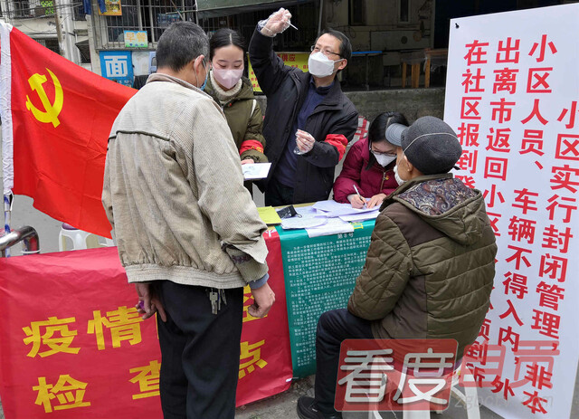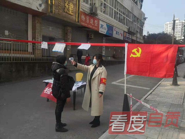 “您好,请问您是哪里人?来小区有啥事?近期有没有离开过自贡?……”12日中午时分,见有陌生人员朝小区走来,值守在自流井区东街盐店街社区兴隆坳4组点位的社区党员肖俊华忙上前询问,抛出一连串的问题。询问登记、测量体温、与小区业主核实情况,一系列严格检查后,肖俊华安心的放行。“每天在党旗下开展工作,我都会感到组织的重托,责任感和使命感油然而生。”肖华说到。