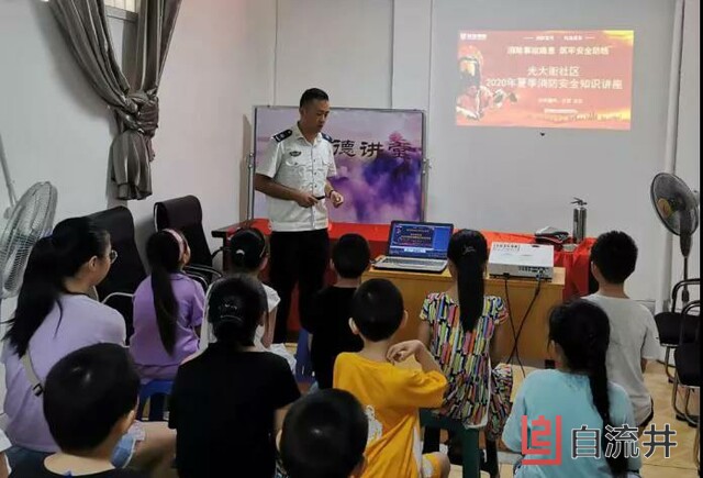 近日,自流井区举行暑期消防安全知识讲座。结合实例为青少年及家长讲解消防设施的使用、急救保护、用电用火安全等知识,切实增强青少年安全意识和自我防范意识。