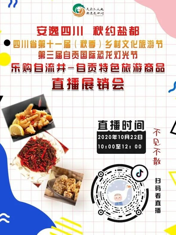 四川省乡村文化旅游节目前已连续举办十一届,一年四季、主题不同,季季有精彩,是全省游客参与最多、持续时间最长的大型乡村文化旅游活动。本次乡村文化旅游节,以“安逸四川·秋约盐都”为主题,自贡历史悠久、人文厚重、风光旖丽。享有千年盐都、恐龙之乡、南国灯城、美食之府的美誉,10月22日上午10:00,尖山直播间与您共享自流井特色产品,届时将有更多好货等你来!