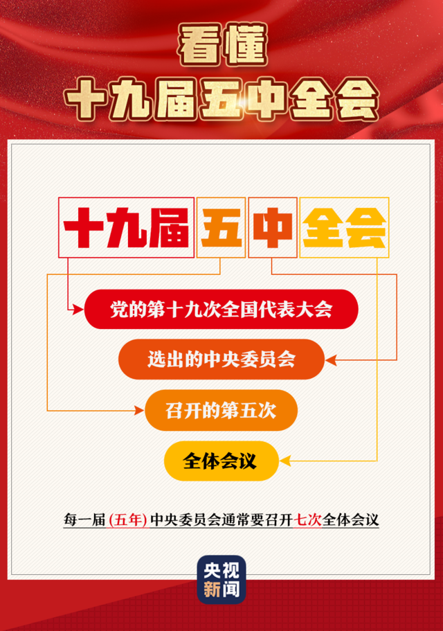 中国共产党第十九届中央委员会第五次全体会议,于10月26日至29日在北京举行。主要议程是,中共中央政治局向中央委员会报告工作,研究关于制定国民经济和社会发展第十四个五年规划和二〇三五年远景目标的建议。