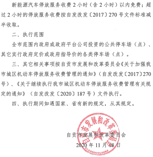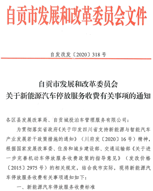 近日,自贡市发展和改革委员会发布了《自贡市发展和改革委员会关于新能源汽车停放服务收费有关事项的通知》。