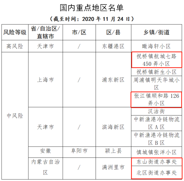 11月24日,按照市应对新型冠状病毒肺炎疫情工作领导小组办公室《关于动态做好国内重点地区到(返)市人员管理工作的通知》(自疫领办〔2020〕113号)要求,自贡市应对新型冠状病毒肺炎疫情工作领导小组疫情防控组发布国内疫情风险等级为高、中风险地区的名单。
