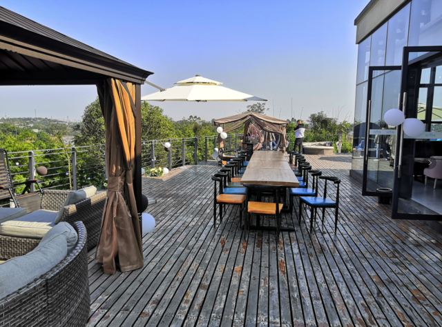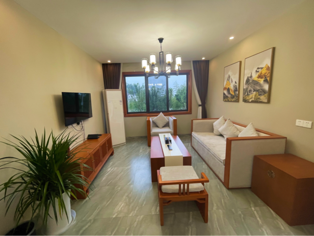 尖山半山腰的独栋别墅,设施完备,现代化与古香古色的完美结合在这里展现的淋漓尽致。客厅背后,又有另一方独特天地。四川麻将,配上华丽的吊灯,竟有一霎那的恍惚。在天然氧吧中约几个好友,在这世外桃源间岂不美哉?