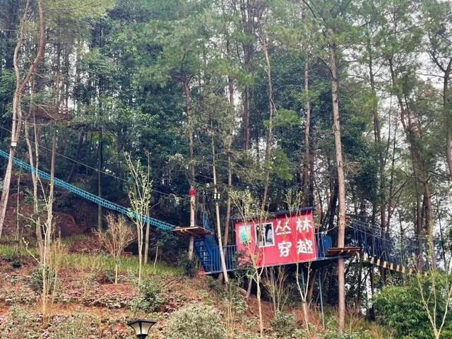 改造后尖山景区新增全生态钓鱼场、丛林穿越、滑索等大型游玩体验项目,