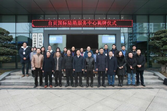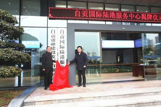 12月18日,自贡国际陆港服务中心在自流井正式揭牌。该中心承担自贡市南向出海物流通道建设工作领导小组交办的日常工作,负责西南(自贡)国际陆港的产业发展、招商引资、基础设施建设等服务性工作。自贡市委常委、组织部部长陈扬杰出席仪式,并为中心揭牌。自流井区委副书记、区长向军参加揭牌仪式。