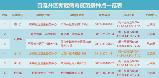 目前自流井哪里可以接种疫苗呢?