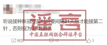 谣言:首剂接种后2到3周内必须接种第二剂,晚了就前功尽弃。