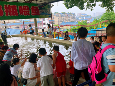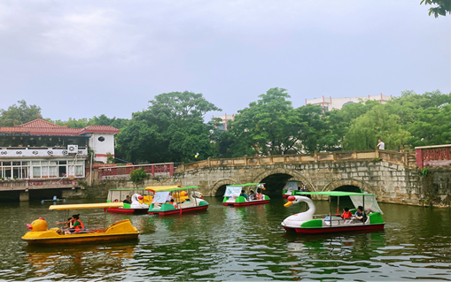 儿童节当天,也有不少家长带着小朋友泛舟湖上