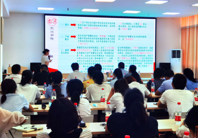 组织召开“守底线 知敬畏”纪法警示教育大会,街道领导班子成员、机关干部职工、社区“两委”共计80余人参加会议。全体与会同志观看了廉政警示教育片,学习了《南充拉票贿选案警示录》。街道纪工委书记邱万丽围绕“作为中共党员,到底什么事不能做,做了对自己和家人究竟有什么影响”主题,结合中央纪委国家监委的相关漫画,通过PPT和讲义生动直观的为大家重点解读了《中国共产党纪律处分条例》制定的重大意义,纪律处分条例的种类有哪些?从轻、从重处分情形是什么?“六大纪律”主要违纪行为表现等内容。党工委副书记、政法委员陈胜男就近期换届重点工作进行安排部署。