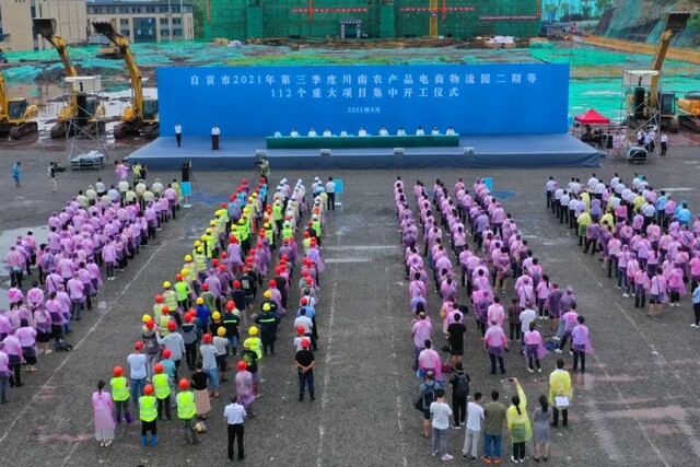 8月13日上午,自贡市举行2021年第三季度重大项目集中开工仪式,112个重大项目在自流井区川南农产品电商物流园二期项目建设现场集中开工。市委书记范波宣布开工。市委副书记、市长曾洪扬介绍项目情况并对项目工作作出安排。市委副书记唐强主持开工仪式。
