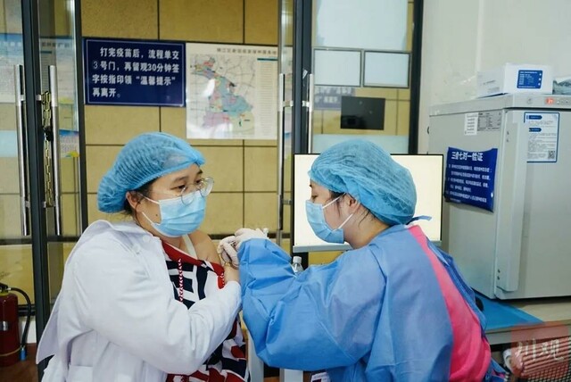 今天一天,旷玲、黄亚丽在内的多名接种点医护人员,已打完“加强针”。旷玲表示,接下来他们还会通过电话、短信、“成龙路的美好生活”微信公众号等方式,通知符合条件的人员来打“加强针”。