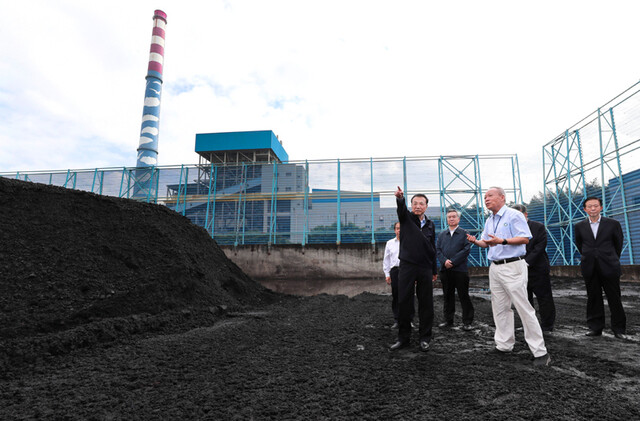 10月13日至15日,在出席第130届广交会期间,中共中央政治局常委、国务院总理李克强在佛山、广州考察。这是10月14日,李克强在顺德五沙热电公司,考察企业发电和煤炭库存情况。新华社记者 庞兴雷 摄