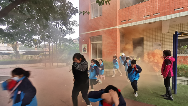 “育英小学消防应急疏散演练开始了”……近日,自贡市自流井区育英小学教学楼内突然浓烟滚滚,伴随着紧急的警报声,学校分管安全副校长刘洋广播通知全体师生立即疏散至学校操场。一场实战有序的演练拉开帷幕。