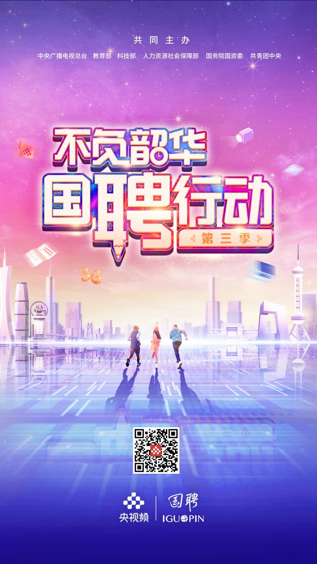 12月8日,“国聘行动”第三季——“不负韶华 国聘行动”大型融媒体招聘活动正式启动。活动由中央广播电视总台联合教育部、科技部、人社部、国资委、共青团中央共同发起,央视频携手国投人力共同主办。