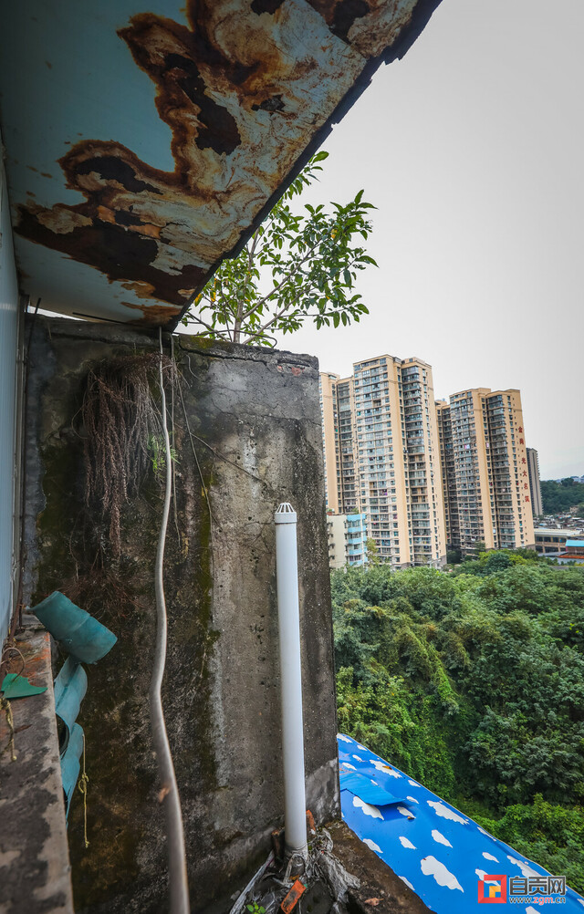 前段时间,自流井区郭家坳街大湾井社区溏湾路77号居民遇到了一件烦心事,楼顶一棵黄桷树长出的根须伸进了墙壁、爬进了楼道,造成屋顶渗漏,楼道地面甚至生出了青苔,楼内居住多为老人,一不小心就会滑倒。