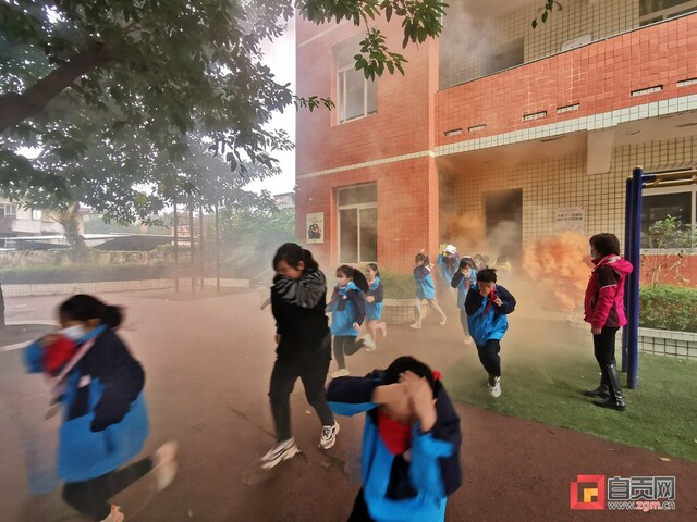 “消防应急疏散演练开始了……”近日,自流井区育英小学教学楼内突然浓烟滚滚,伴随着紧急的警报声,学校分管安全副校长刘洋广播通知全体师生立即疏散至学校操场。一场有序的实战演练拉开帷幕。