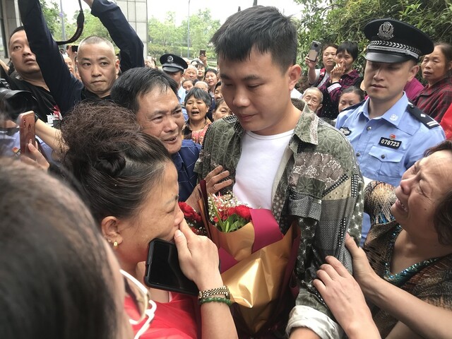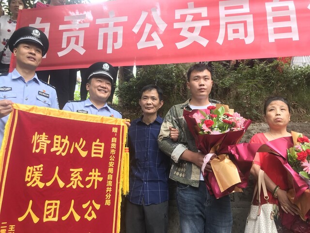 2021年5月27日上午9点,星期四,自贡市自流井区东源半岛小区数百名群众自发聚集在一起,有的群众拿出了事先准备好的牌子“宝贝,欢迎你回家!”、“宝贝,终于等到你!”9:10分,一辆警车驶进了该小区,在自流井公安分局刑侦大队大队长杨宇的陪同下,一位阳光俊朗的青年走出警车,顿时,现场响起欢呼的掌声,有群众喊出了“共产党万岁!”、“人民警察好样的!”的口号,数名中年男女哭喊着跑向青年,紧紧的拥抱、不停的呼喊;“孩子,我们想你啊!”、“都29年了,你到哪里去了啊?”......虽然自贡话青年男子一句也没听懂,但从亲人身上流露出的真情、真爱,也让男子感受到了前所未有温暖和关爱!
