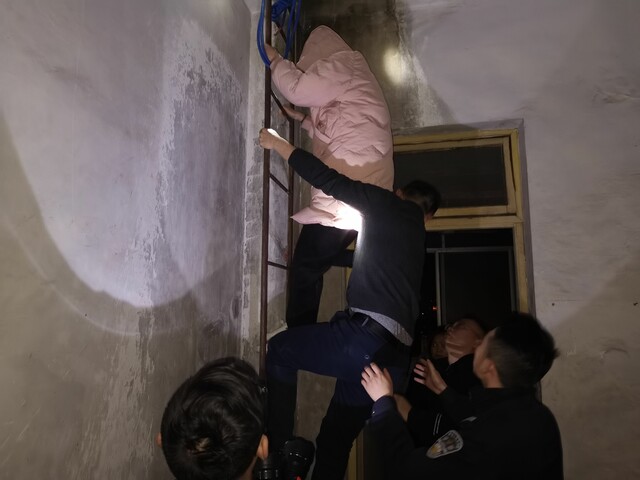 自贡市公安局自流井分局东兴寺派出所民警接警后,结合“访民意察社情化事端保安宁”专项行动,立即开展行动,通过走访调查、查看监控等方式多方查找未果。朱某将手机关机,微信也将所有亲人删除,轻生迹象明显,派出所立即向市局、分局指挥中心请求支援,锁定朱某出现范围在自己家附近,派出所民警对该地开展地毯式搜索,22时许,民警终于在某楼房房顶发现朱某身影。朱某坐在楼顶护栏上,双脚伸出墙外,随时可能掉下楼去,情况十分危急。为确保朱某安全,避免激化其情绪,民警一边让其亲属安抚其情绪,一边联系消防救援人员和120急救人员到现场,做好救援准备。