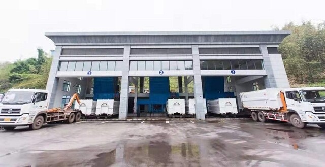 一辆辆小型垃圾清运车将垃圾清运到这里,倒入一台垃圾压缩机组。只见环卫工人站在箱体外侧,采用遥控操作依次按键,箱体的翻斗机构向上翻转,将垃圾倒至箱体内,由箱体内部压缩机构压缩,不一会儿,10余吨垃圾被“吞”下,体积被压缩为原来的2/3。这是自流井区舒坪街道金鱼村的自流井区垃圾压缩中转站里常见的一幕。