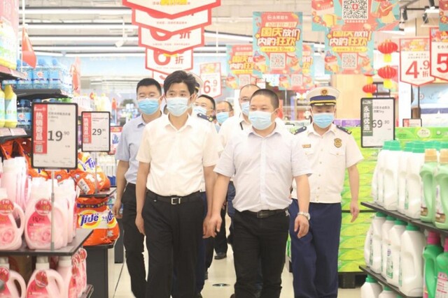 国庆将至,群众出行出游活动增多,商场超市人流量激增,安全管理压力加大。黄雪智一行到永辉超市实地查看超市消防设施设备,超市入口亮码扫码、体温监测、口罩佩戴等防控措施落实情况,了解食品安全管理制度落实和安全管理人员工作开展情况。要求企业制定好应急预案,做好各项应急准备,安全生产、疫情防控工作两手抓,努力让群众买的舒心、吃的安心、用的放心。