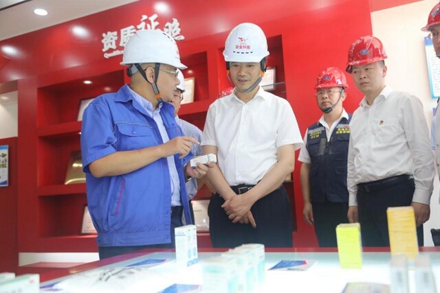 在鸿鹤制药有限公司,黄雪智一行参观企业成品展厅,详细了解企业生产工艺及安全防护措施,认真听取企业安全责任落实情况及发展需求。要求企业在发展过程中,落实好安全生产各项制度,按要求开展安全工作。