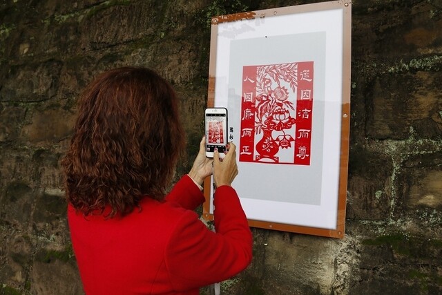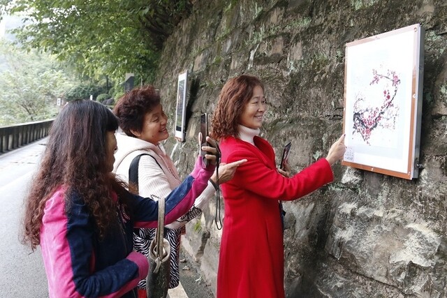 在自流井区水涯晓渡公园“清风文化长廊”,步道石壁上丰富的廉洁文化作品吸引了不少过往居民驻足参观拍照。在这里,向居民广泛征集的“廉”文化书画、摄影等作品充分融入了村居建设中,成为廉洁文化走进基层、贴近群众的新样板。