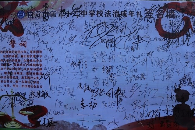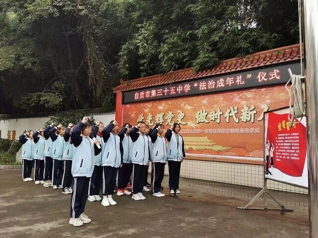 继德铭中学“法治成年礼”活动启动之后,自流井区教体局所属的自贡35中、6中、23中、自贡成都外国语学校、22中等其他五所学校分别于10月18日至11月10陆续组织本校12周岁学生开展了以“不负青春,法护成长”等为主题的“法治成年礼”活动。至此,自流井区680余名12周岁的学生全部参加了“法治成年礼”活动。