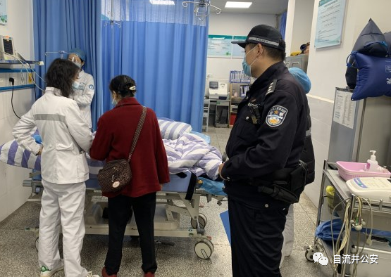 期间,民警经过多方努力,了解到尤大爷的子女在外地,现无法立即到医院照顾,随即联系了其妻子刘奶奶,考虑到天色已晚,刘奶奶同样是70多岁的老人,民警驱车前往刘奶奶居住的小区,接送她前往医院照顾尤爷爷。