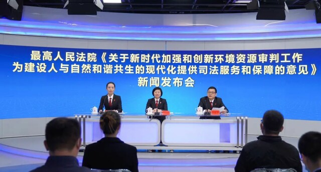 2021年10月28日(星期四)上午8:30,最高人民法院在全媒体新闻发布厅发布《关于新时代加强和创新环境资源审判工作 为建设人与自然和谐共生的现代化提供司法服务和保障的意见》并回答记者提问。最高人民法院副院长杨临萍、最高人民法院环资庭副庭长李明义共同出席发布会。发布会由最高人民法院新闻局副局长王斌主持。