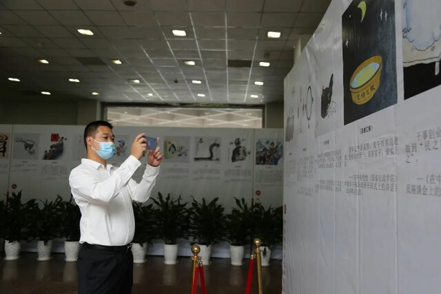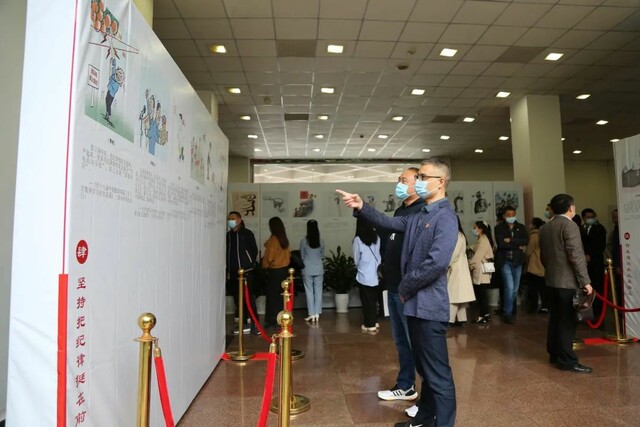 进入展览场地,干警们对一幅幅漫画仔细学习观看。“作风建设永远在路上”、“以零容忍态度惩治腐败”、“一切为了群众,一切依靠群众”、“不忘初心,牢记使命”等8个主题篇章共68幅漫画,运用了巧妙的内容构思、生动的人物形象、凸显的思想主旨,既创新了学习教育的载体,又把全面从严治党的中心主题体现得淋漓尽致,让干警们坚定理想信念,思想政治受到洗礼。