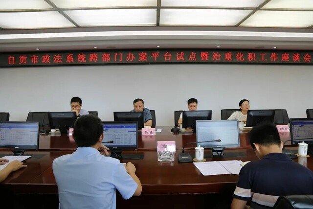 自流井法院工作人员在法院搭建的“政法协同”平台上,对如何使用系统进行立案、卷宗审查、文书移送进行了演示操作,对平台现有功能作了介绍,对试运行中存在的问题作出反馈,自流井区委政法委、区法院、区检察院、区公安、区司法局分别就政法系统跨部门办案平台试点工作开展的情况进行了汇报。