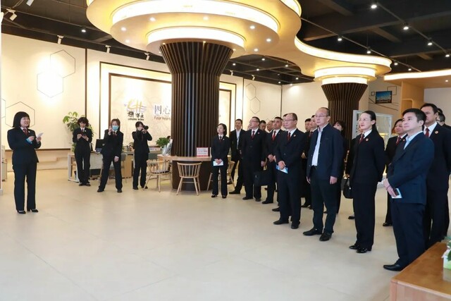 参会人员首先参观了全省市域治理龙井·华大区域党群服务中心试点项目,了解大安区检察院开发“燊海云”小程序畅通民意渠道,创新培育“龙情微笑”法治品牌,依托试点平台融入区域社会治理等情况。