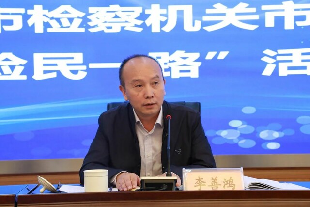 市委政法委副书记李善鸿作了讲话,充分肯定检察机关主动作为,积极参与社会治理,深入推进市域社会治理现代化所做的工作,并提出了三点希望:一是以更高的站位,推动社会市域治理现代化。二是以更实的举措,推动社会市域治理现代化。三是以更大的合力,推动社会市域治理现代化。