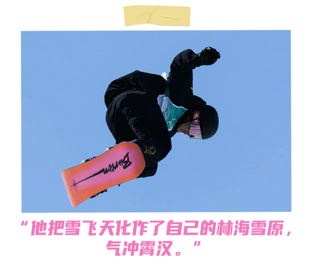 单板滑雪男子大跳台,苏翊鸣两跳提前锁定金牌。总台解说员于嘉提及苏翊鸣曾出演过的电影《智取威虎山》,说“他把雪飞天化作了自己的林海雪原,气冲霄汉”。“小栓子”一飞冲天,从CCTV6“滑”到了CCTV5、CCTV5+、CCTV16……怎么样,脑内响起“气冲霄汉”的旋律了没?