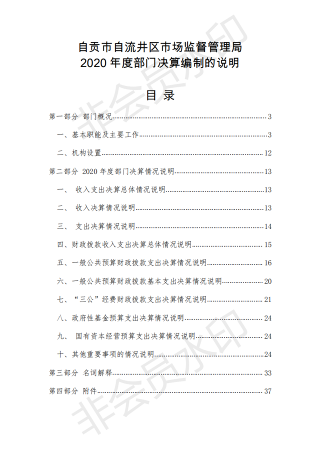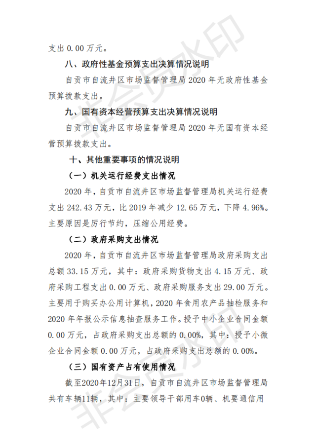 自贡市自流井区市场监督管理局2020年度部门决算编制的说明