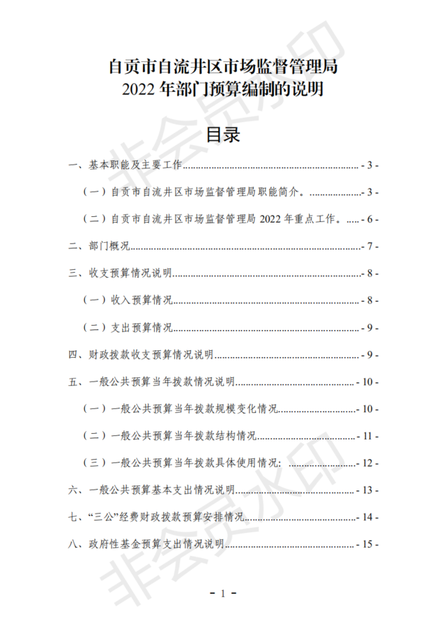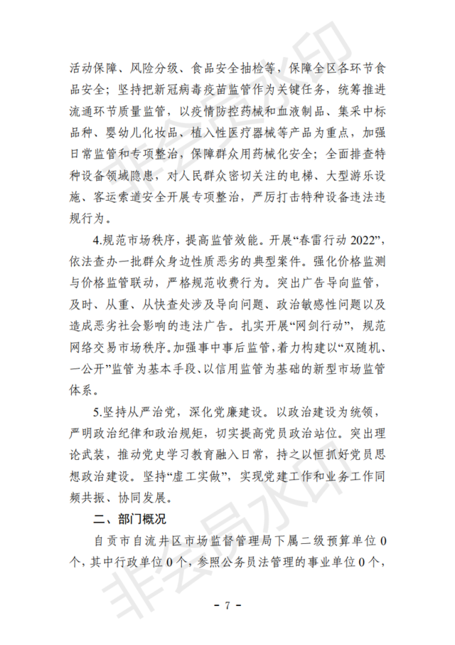 自贡市自流井区市场监督管理局2022年部门预算编制的说明