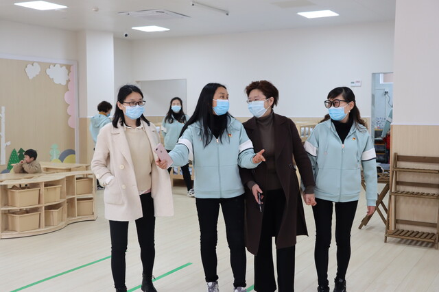 实地参观了班级活动室、功能室、户外、大厅及行政区等环境创设,观摩了幼儿建构游戏、户外游戏活动;听取了园长熊力的“盐都未来工程”中期汇报。