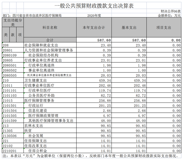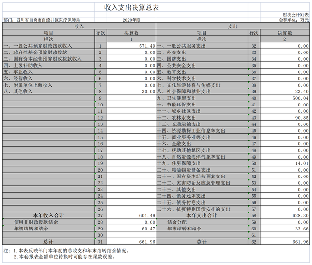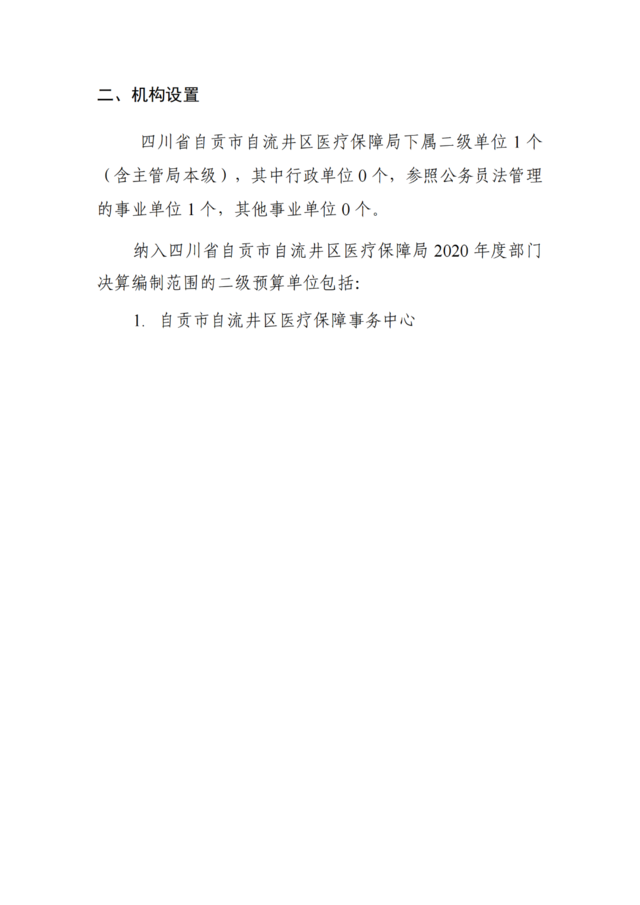 自贡市自流井区医疗保障局2020年度部门决算公开