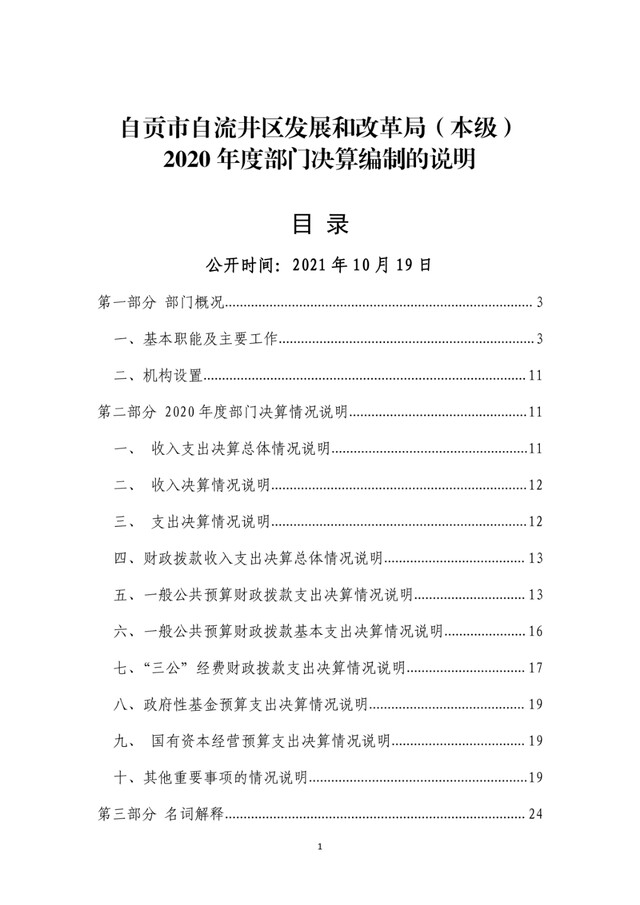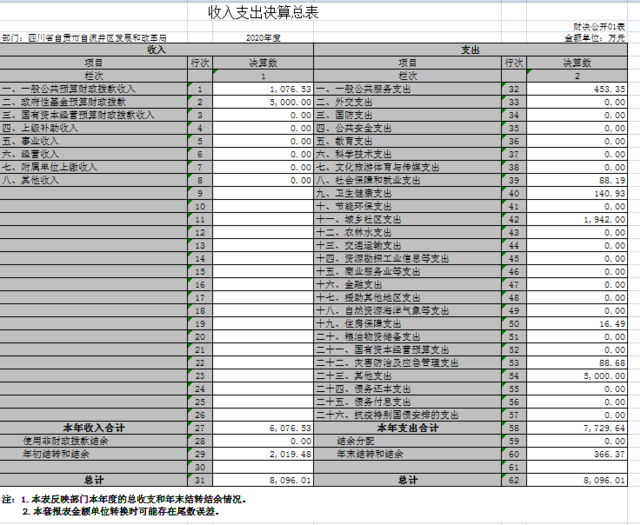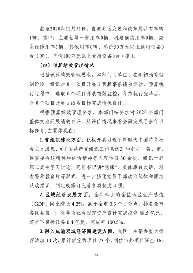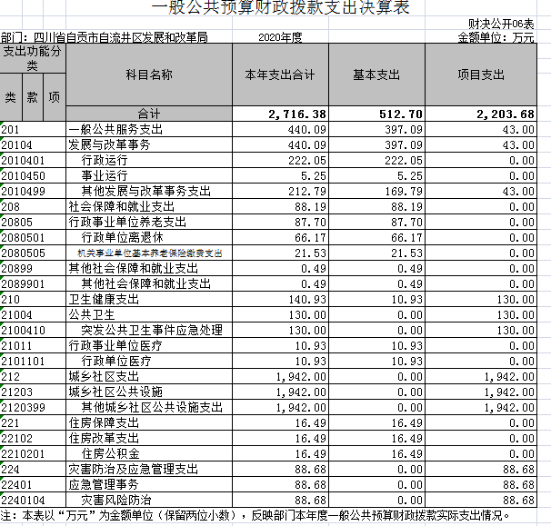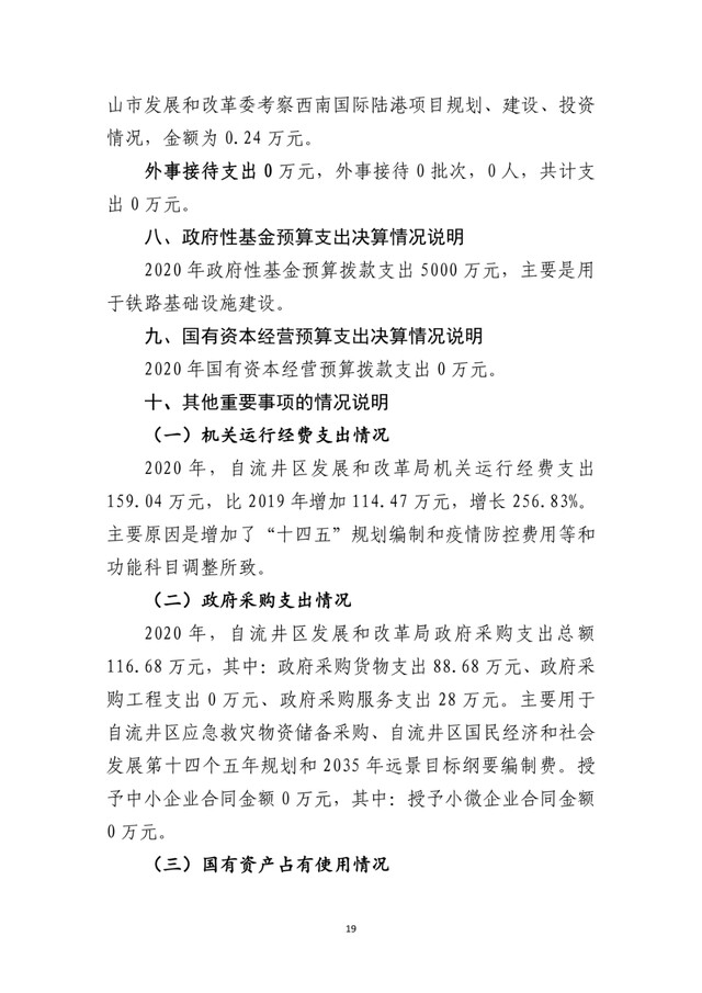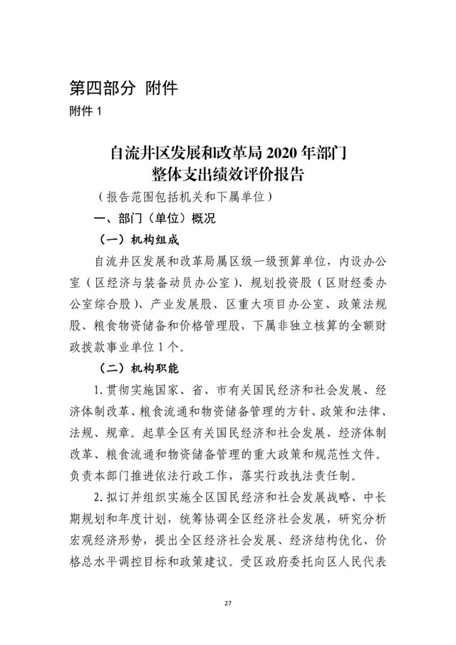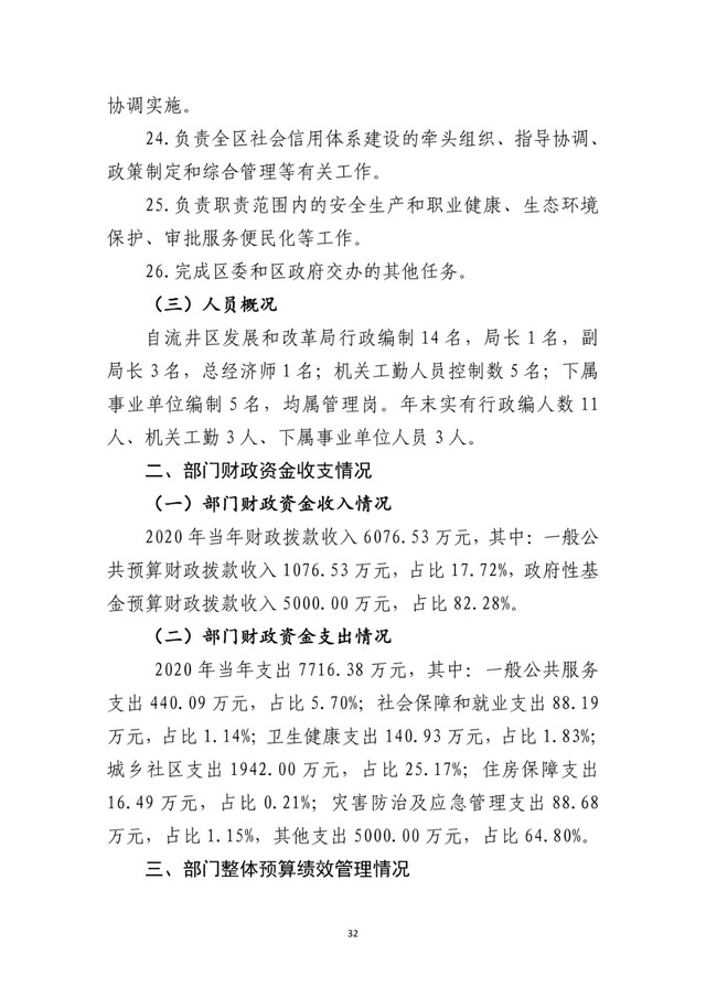自贡市自流井区发展和改革局2020年度部门决算公开