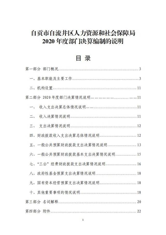 自贡市自流井区人力资源和社会保障局2020年度部门决算公开(本级)