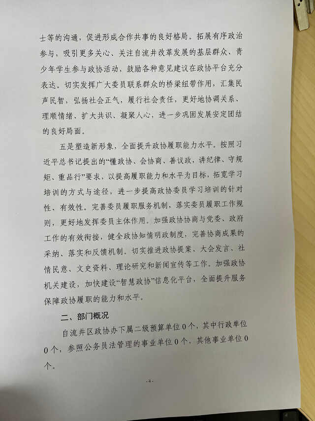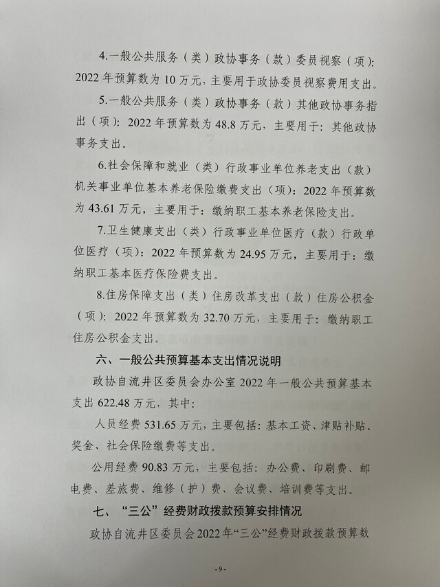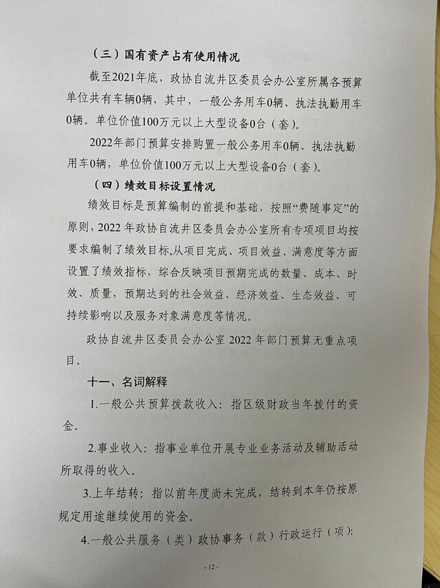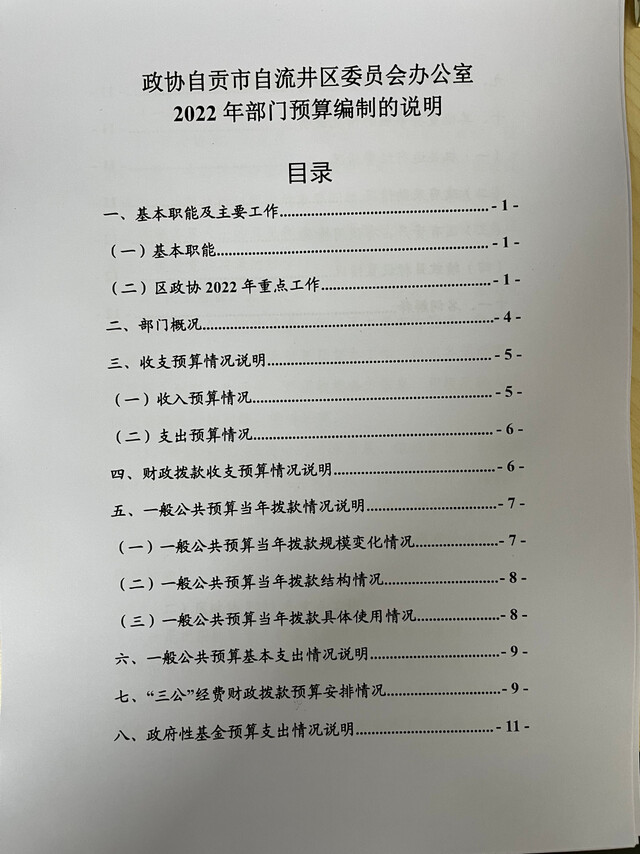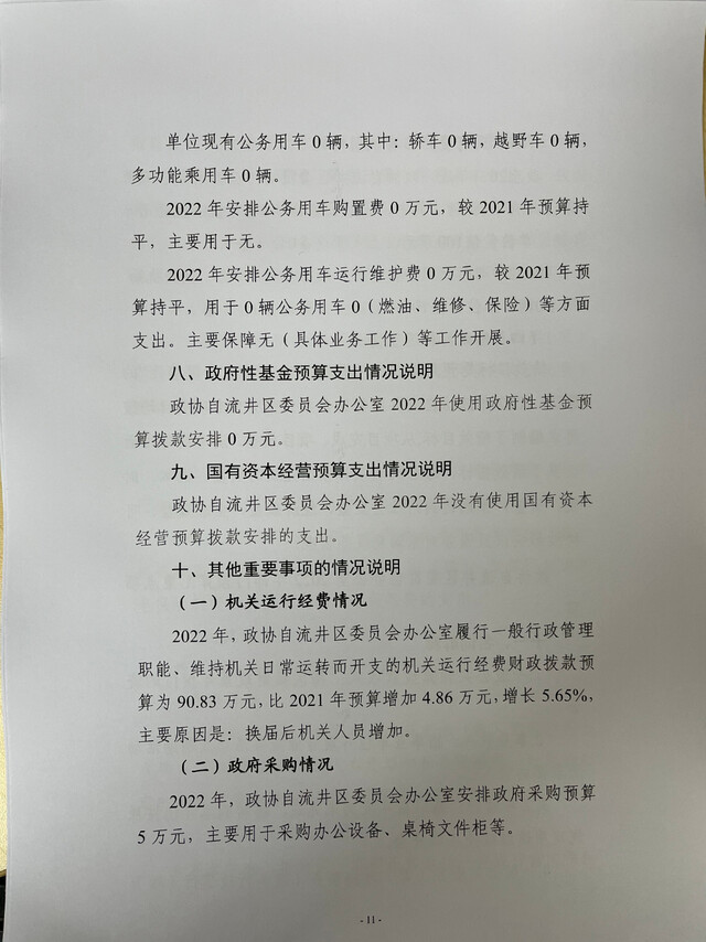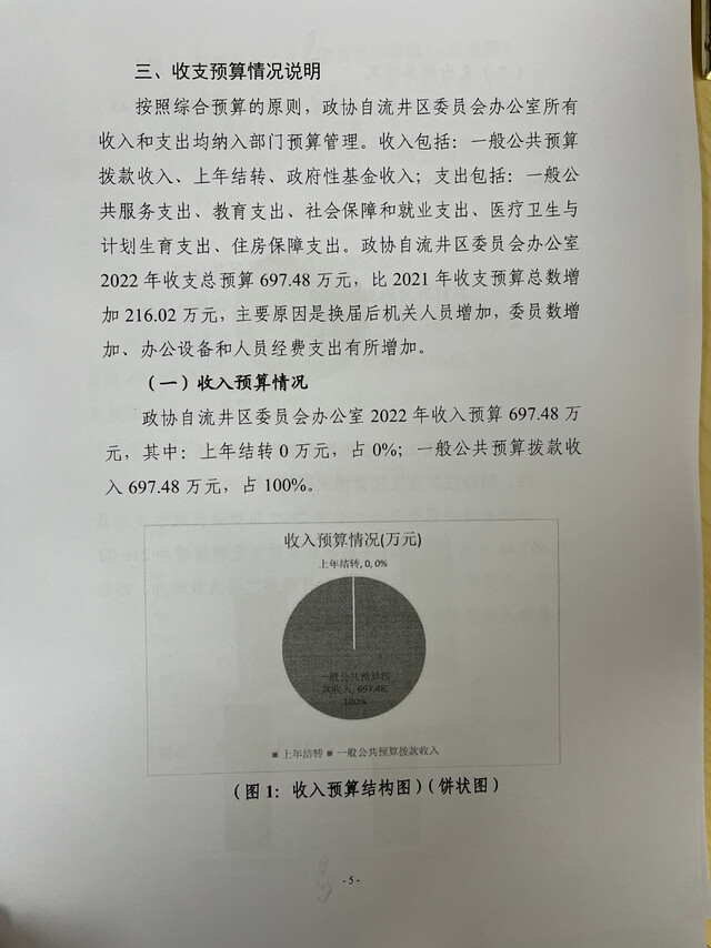 中国人民政治协商会议自贡市自流井委员会办公室2022年度部门预算公开