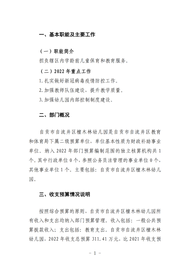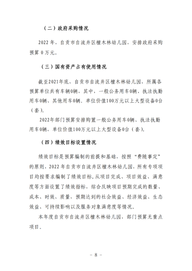 自贡市自流井区檀木林幼儿园2022年预算公开