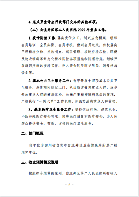 东街社区卫生服务中心(自流井区第二人民医院)2022年预算公开