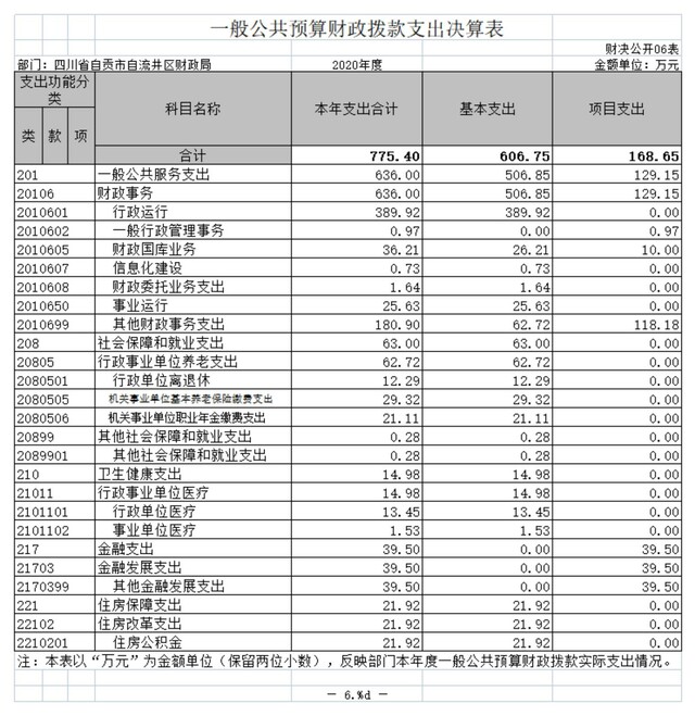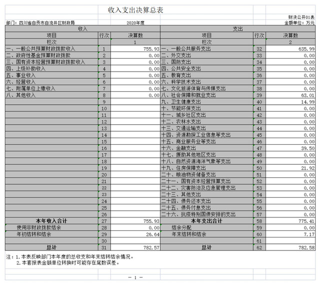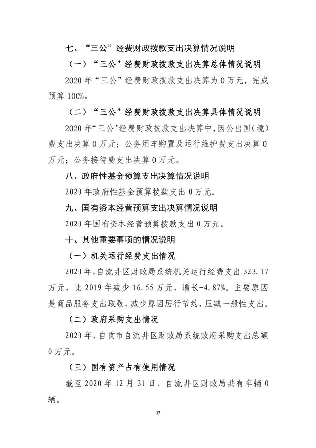 自贡市自流井区财政局2020年度部门决算公开(财政系统)