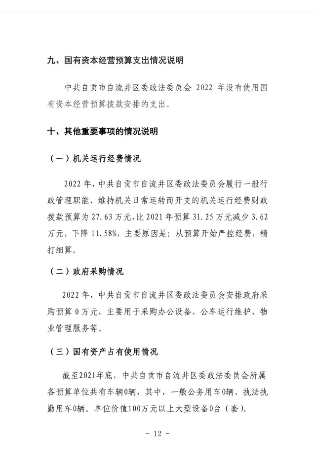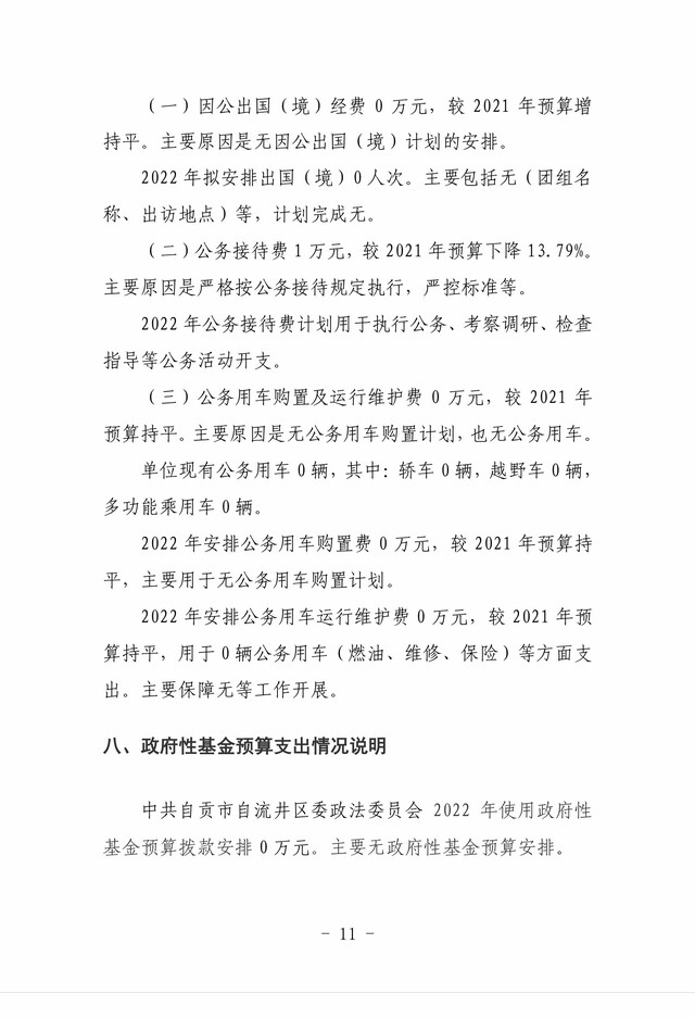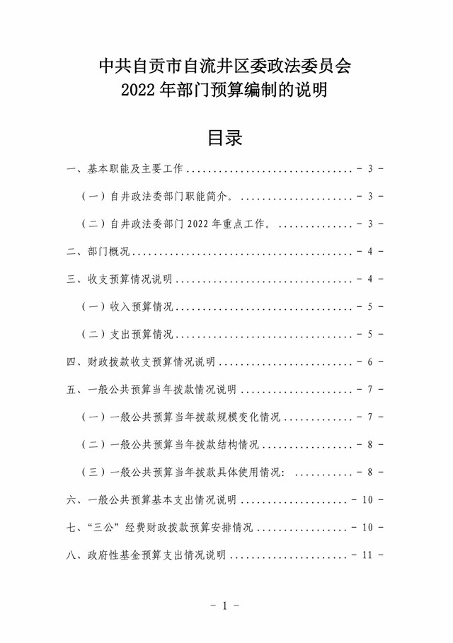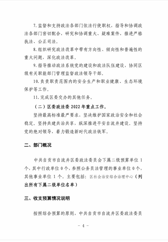 中共自贡市自流井区委政法委员会2022年部门预算编制的说明