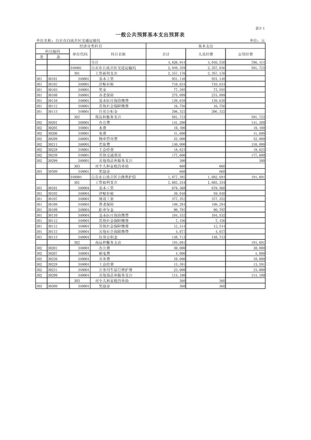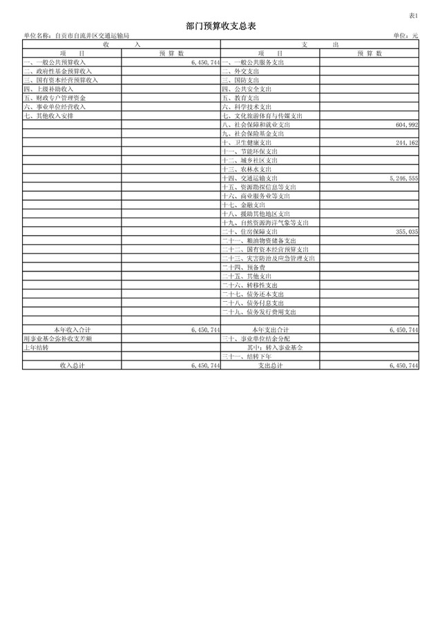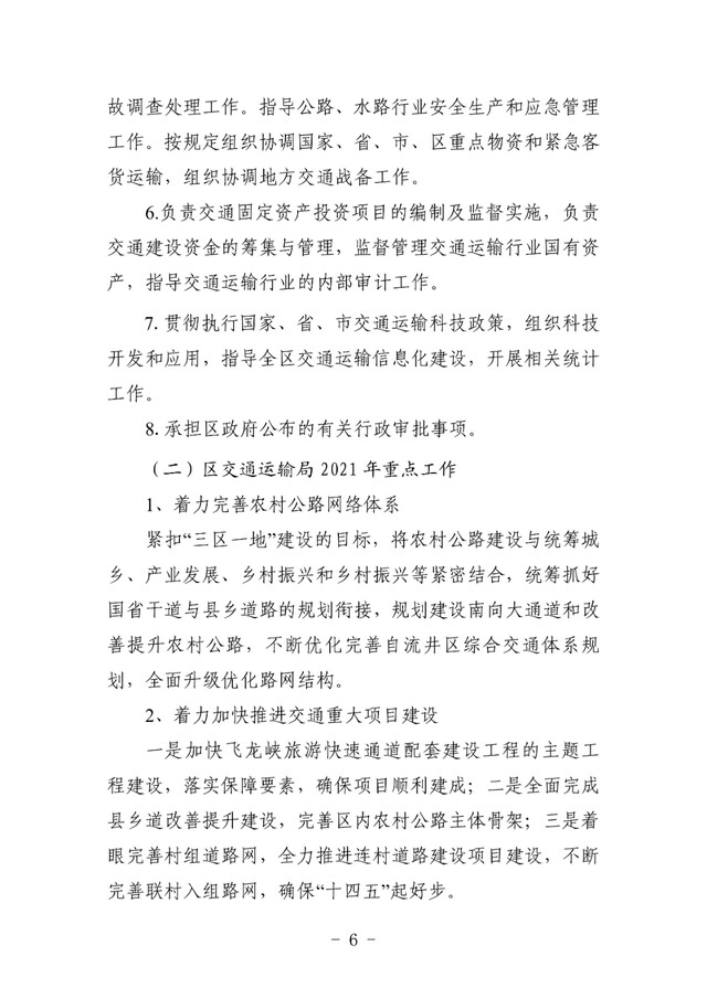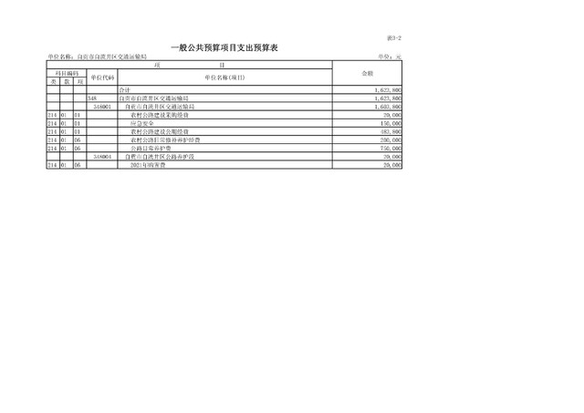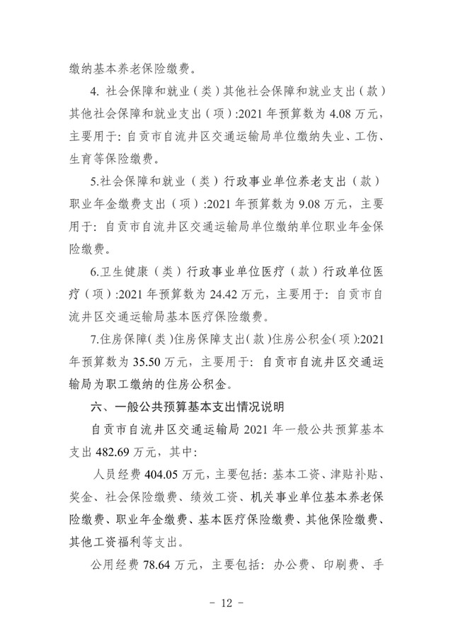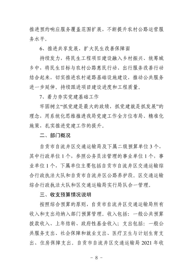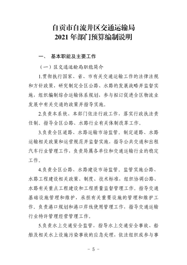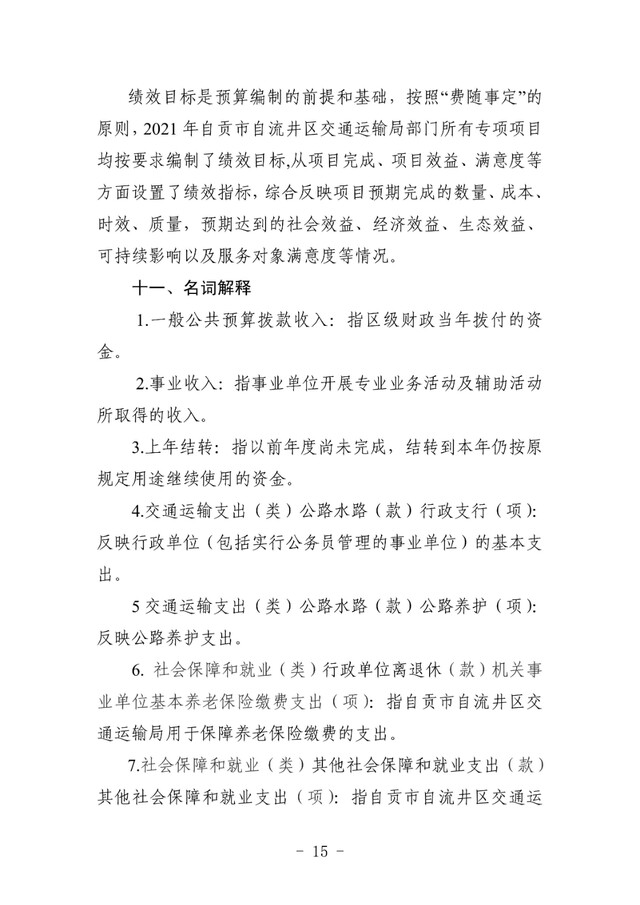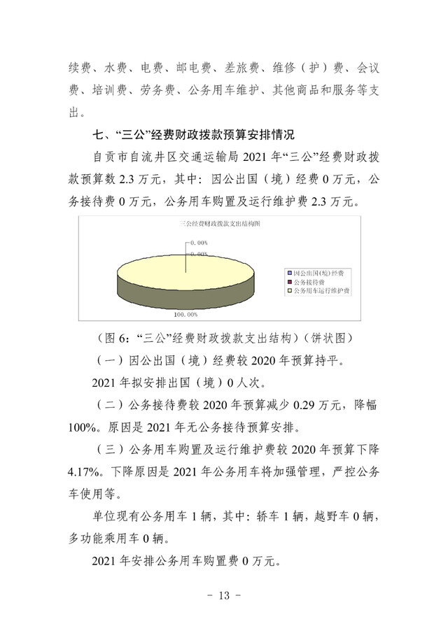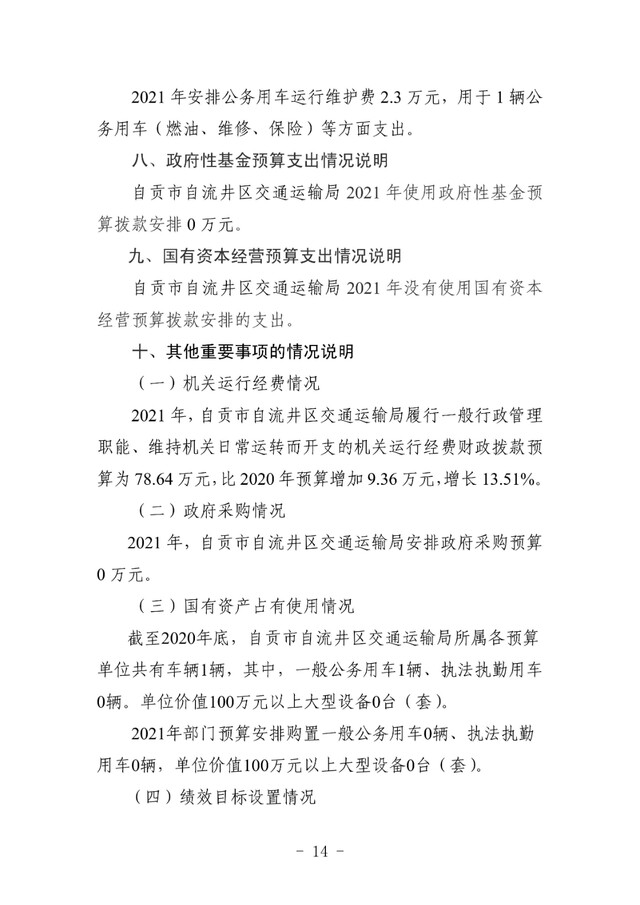 自流井区交通运输局2021年预算公开